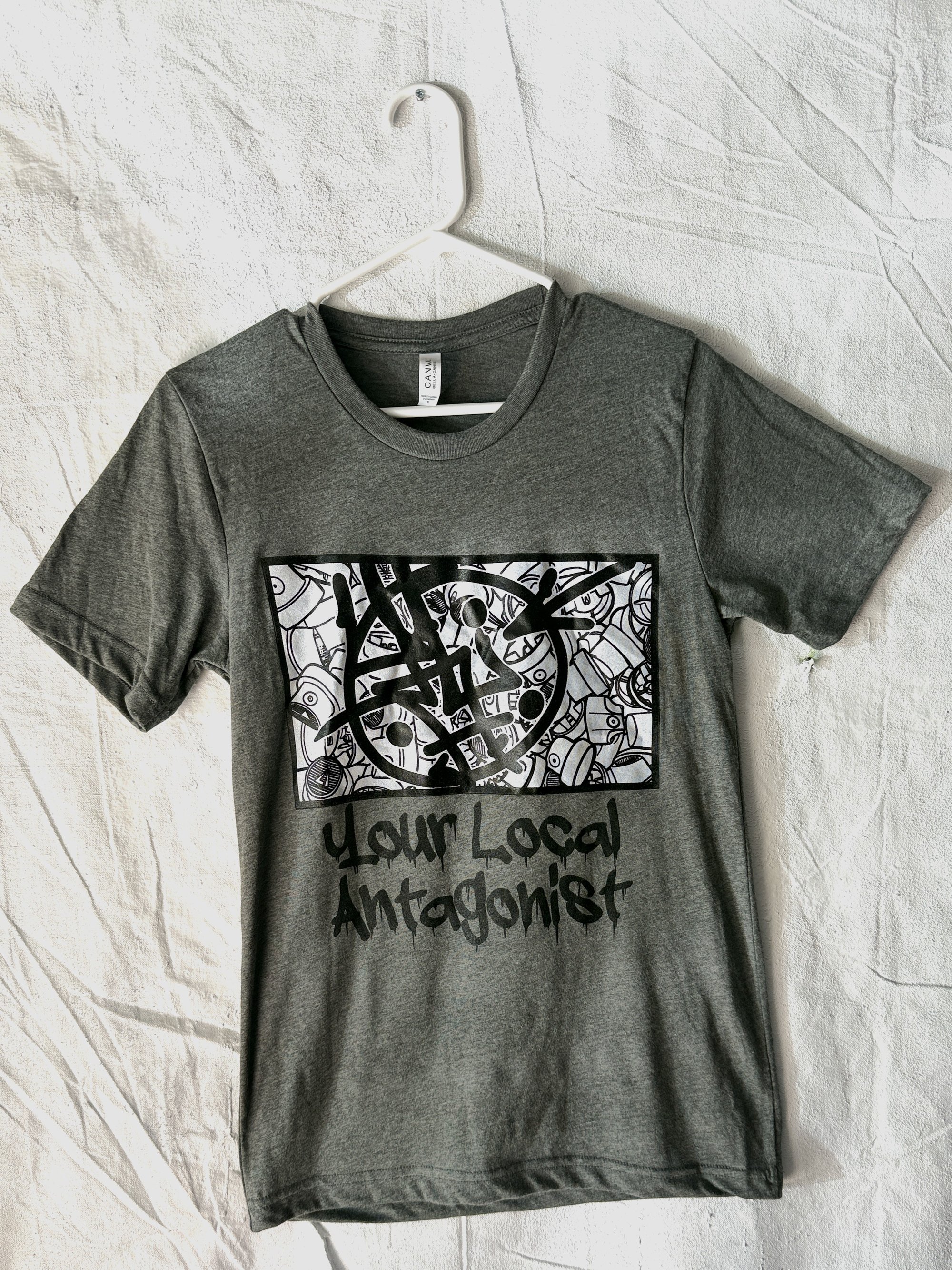 Our original YLA logo on top of our signature image of spray caps. Screen printed locally at Ploy! in Bremerton, WA on BELLA+Canvas blanks.
